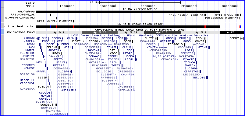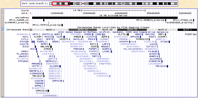 16.325 Mb of DNA involving 16 clones localizing to chromosome 4p16.1-4p15.2.