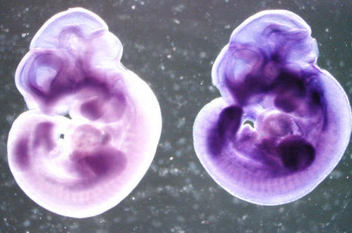 At right is part of an image from a mouse embryo for the ortholog to the human LDB2 gene. (via VisiGene utility), which lies in the microdeletion region described in the report (right-click to enlarge).